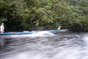 De esta manera emprendimos el viaje subiendo por el río Carrao, que nace desde el Este en las montañas cerca de Luepa, y cae hacia el Oeste en la laguna de Canaima. El recorrido río arriba es de aproximadamente unas cuatro horas de duración. Pero uno está tan impactado y emocionado por los paisajes que va viendo en el trayecto que el tiempo pasa volando.