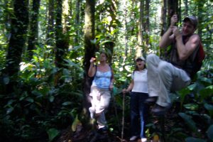 El recorrido es por el medio de la selva donde tienes que sortear muchas raíces de árboles gigantes, por lo que hay que tener cuidado de no resbalar y torcerse un pie.